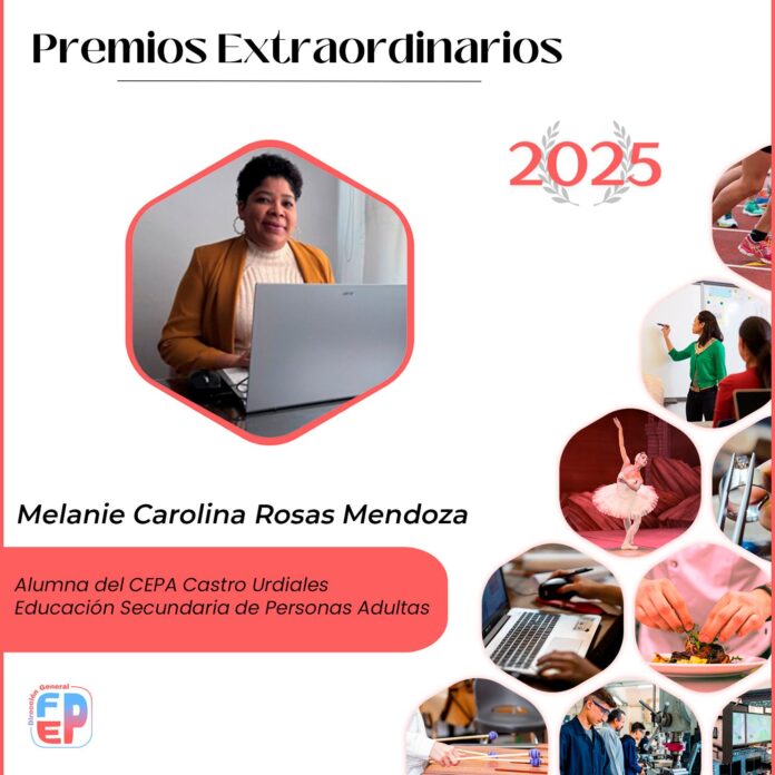 Entre los galardonados figura Melanie Carolina Rosas Mendoza, alumna del CEPA de Castro Urdiales, que ha obtenido el Premio Extraordinario en Educación Secundaria para Personas Adultas (ESPA), un reconocimiento a su dedicación y perseverancia.
